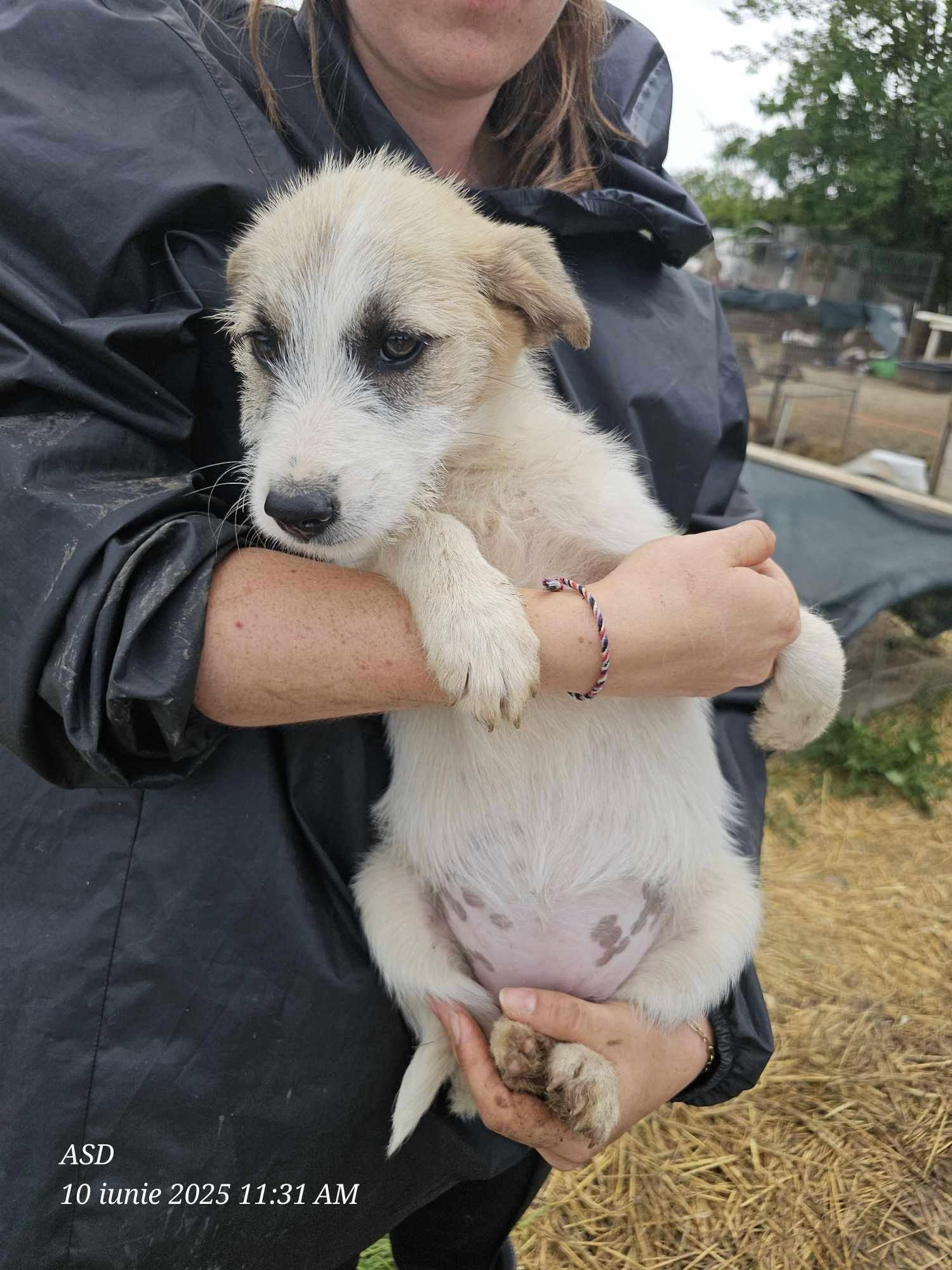 Mia a été trouvée par Nicu. Elle est gentille, amicale et en recherche de caresses. Elle sera de taille moyenne à l’âge adulte.